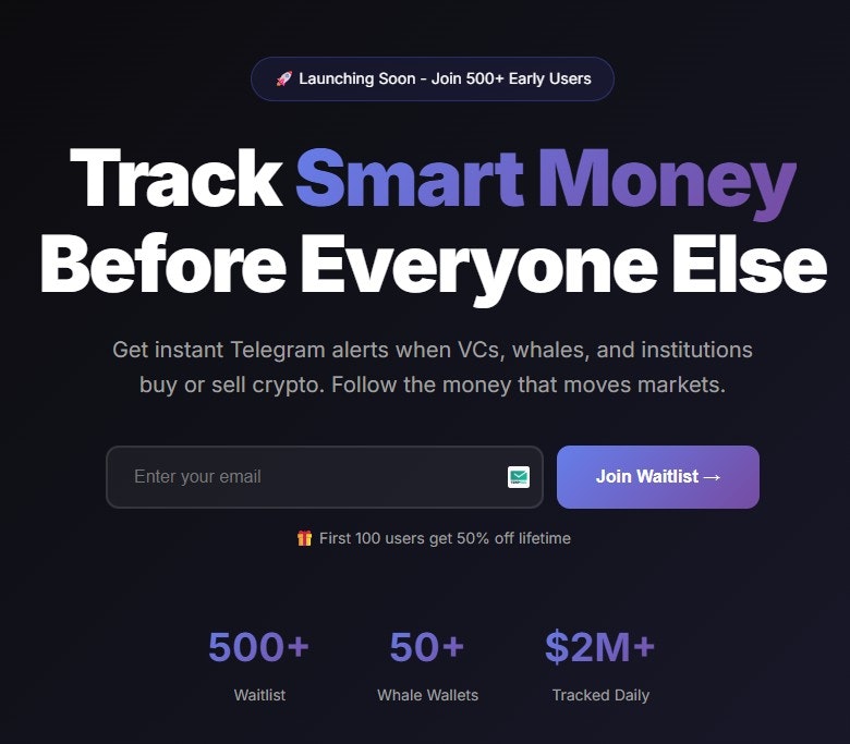 Track 50+ crypto whale and VC wallets in real-time. Get instant Telegram alerts when they move >$100K. Know if they're buying (bullish) or selling (bearish) before everyone else. Perfect for traders who want early signals. Last week, we caught a whale buying $5M SOL - it pumped 12% six hours later. Free early access for first 100 users. Not financial advice. DYOR.