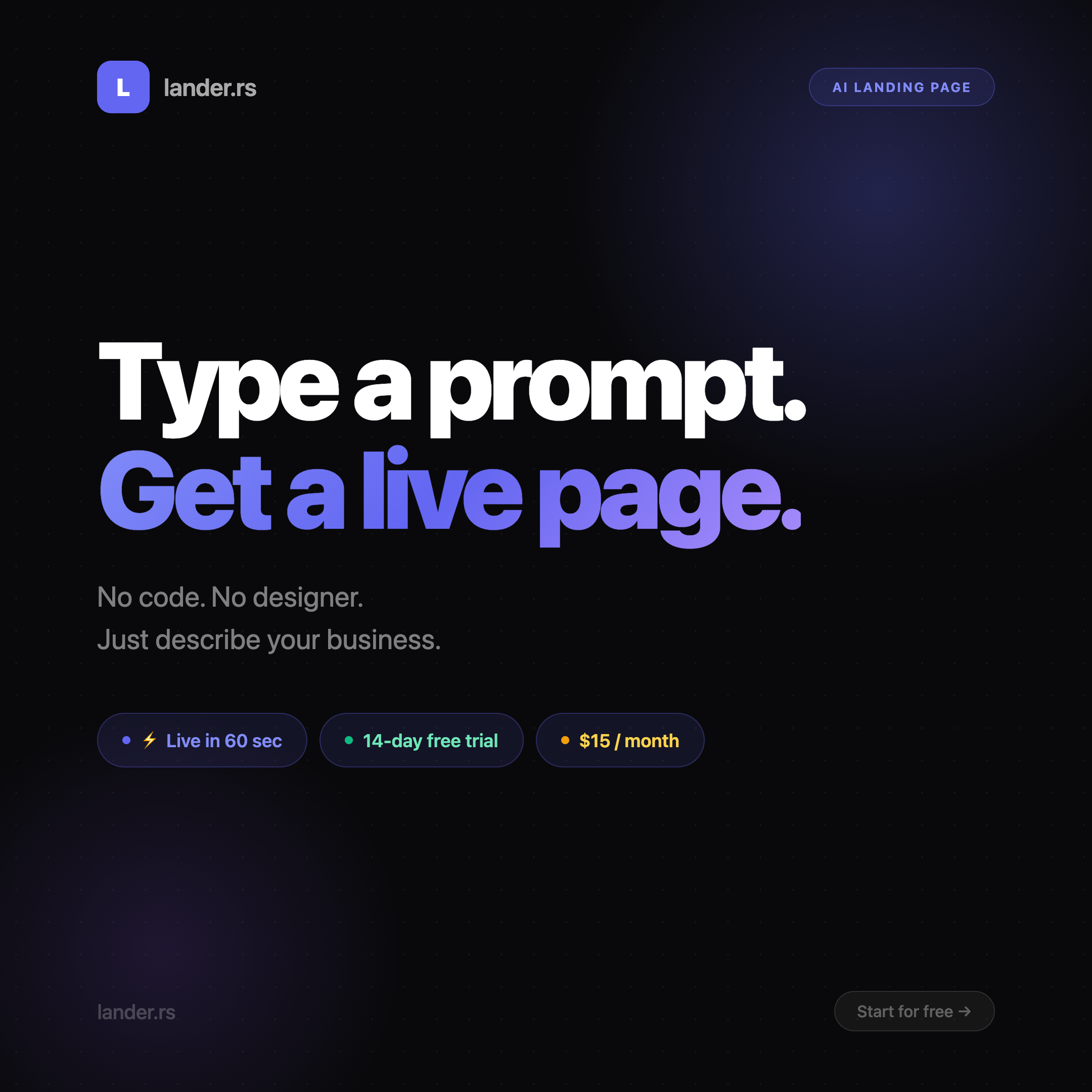 OtherType a prompt. Claude AI builds your landing page instantly.