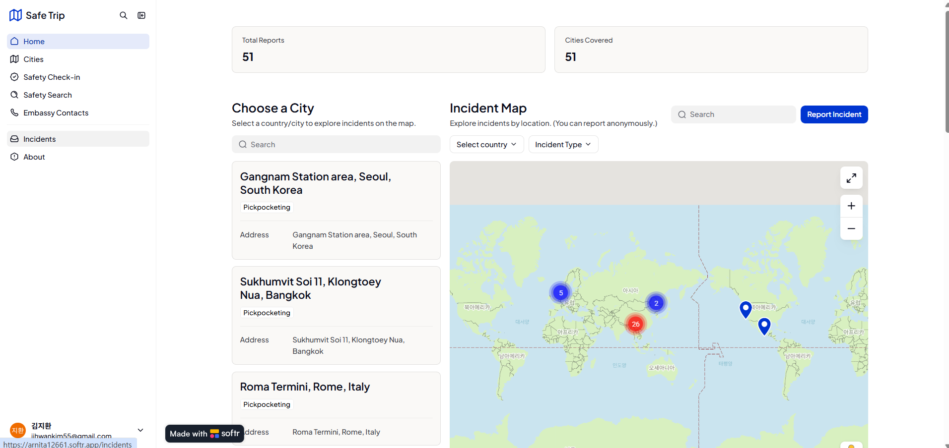 SafeTrip is a no cost service that allows users to share safety issues such as scams, theft, or pickpocketing for particular places. The Claude AI system evaluates every submission, creates immediate safety advice, and applies Risk and Credibility ratings to identify unreliable information. You can look up any street or hotel to review previous incidents prior to making a reservation. This platform was developed independently without prior coding experience, utilizing Softr, Make.com, and the Claude API.